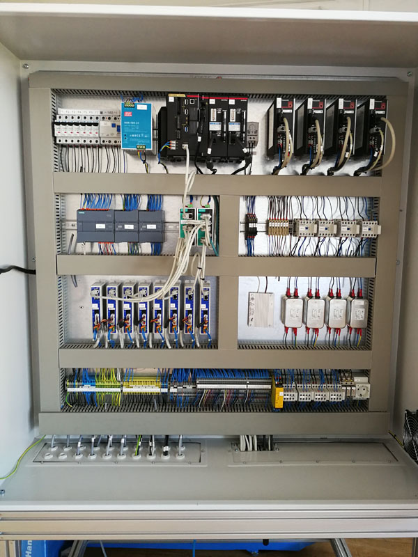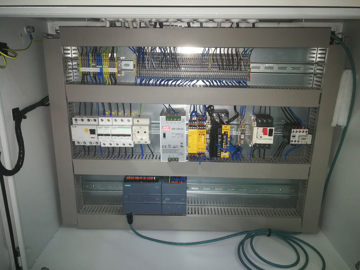 Siemens plc vezérlésű automata sorjázó állomás. Munkadarab be- kihordás szervo hajtású szállítószalagon történik, melynek sebessége százalékosan állítható. A munkadarab továbbítás párhuzammegfogó segítségével történik, melyeket pneumatikusan működtetett emelő és fordító hengerrel mozgatunk a szalagok és a fészkek között. A sorjázáshoz szükséges forgó mozgást egy szervóval hajtott orsó biztosítja. Erre történik a munkadarab automata behelyezése és kivétele. Az orsót a munka és a be- kirakási pozíció között egy pneumatikus munkahenger billenti. A sorja leszúrását 3db elektromos vezetett henger végzi, melyek külön-külön mechanikusan állíthatók, átszerelhetők. Működésük programból szabályozható. A leszúrást követően a darabot átrakjuk a vizsgáló fészekbe. A vizsgáló fészket egy elektromos szánegység mozgatja a berakási és a mérési pozíciók között. A vizsgálatot 2db 2D-s profil mérő szkenner végzi több lépcsőben. Az egyes vizsgálatok közötti átállásokat elektromos hengerek végzik. A vizsgálat kiértékelésének megfelelően megtörténik a darab leválogatása.