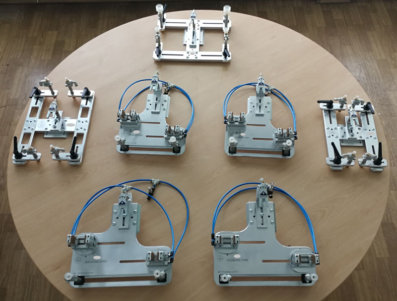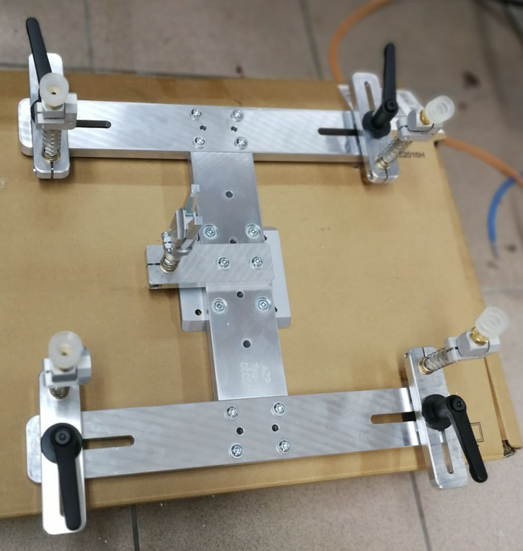 4db rugóztatott vákuumkoronggal és 1db engusz csipesszel szerelt fej, melyek külön-külön x-y irányban állíthatók egy-egy kézi rögzítő kar segítségével. Szerszám váltásnál gyors átállást tesz lehetővé az alkatrészek között.